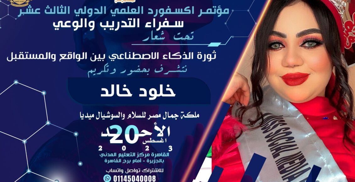 يكرم مؤتمر اكسفورد العلمي الدولي الثالث عشر برئاسة دكتور عمرو سراج ملكة جمال مصر للسلام خلود خالد ضمن أفضل الشخصيات المتميزه لعام 2023 جاء ذلك بترشيح من مخرج المؤتمر اكرم دره في إطار تكريم المتميزين والنجوم وبحضور لفيف من القيادات السياسية والاقتصادية والاجتماعية والثقافية والفنية وكوكبة من الإعلاميين والصحفيين …..