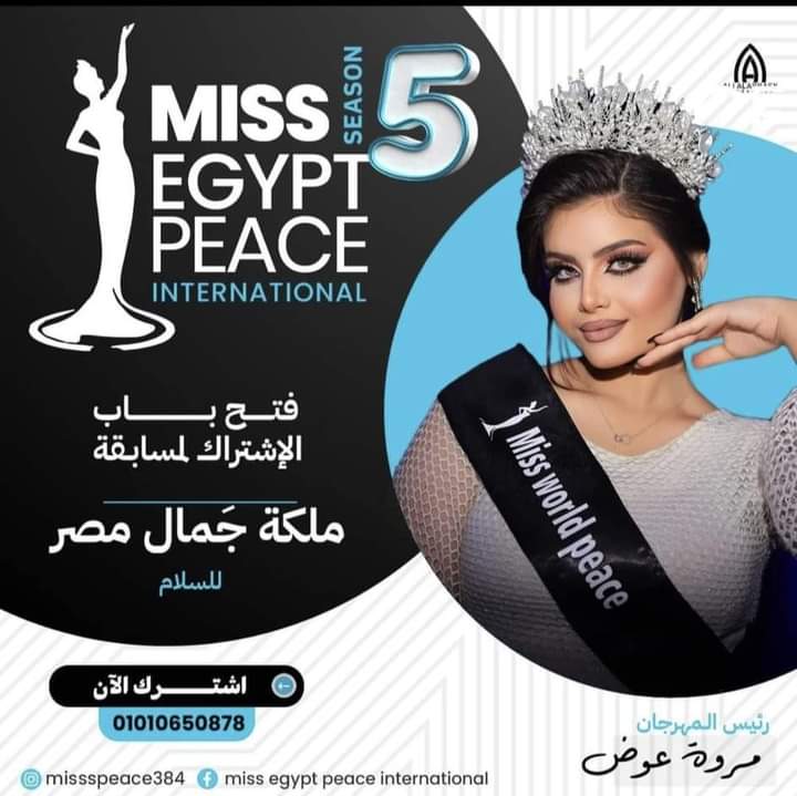 مفاجآت الدورة الخامسة ..لمسابقة ملكة جمال مصر للسلام برئاسة مصممة التيجان والحلي مروه عوض