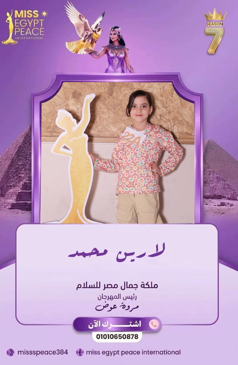 “🎉 ألف مبروك للمتألقة لارين محمد على تأهلها لمسابقة ملكة جمال مصر للسلام دوليًا! 🌟